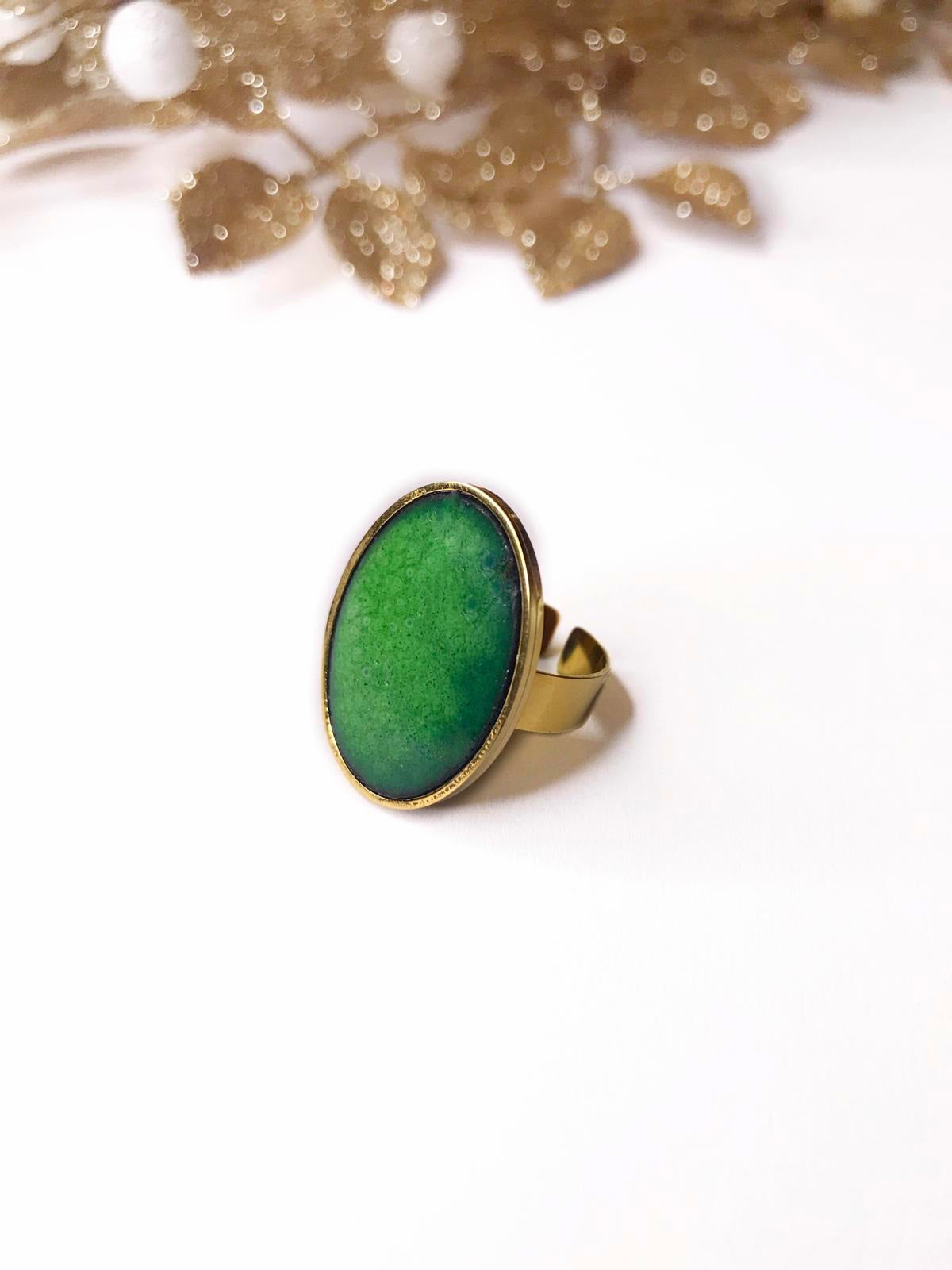 Une teinte végétale raffinée et une forme ovale affirmée pour un look tout en douceur. Cette bague habille la main avec subtilité et caractère, seule ou associée aux boucles “Garden Party” assorties 🌿