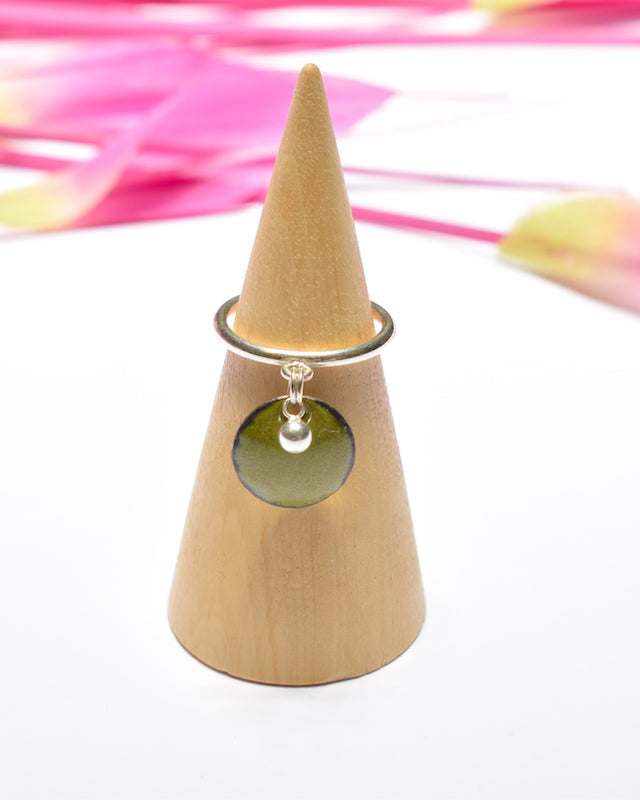 Bague pampille perlée vert olive * Sur Commande *
