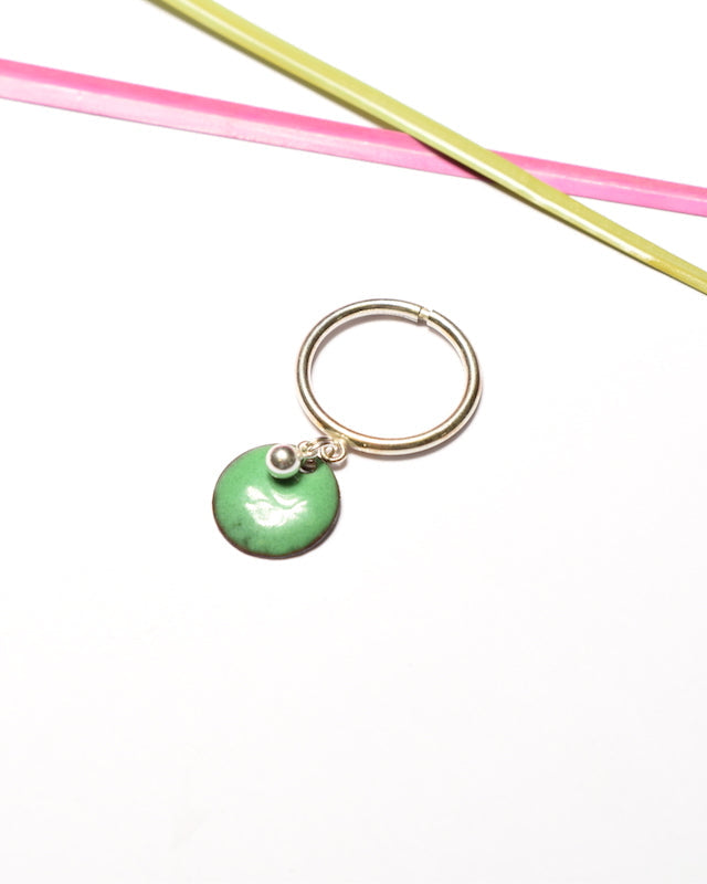 Avec sa teinte douce et naturelle, la bague Pampille Perlée verte  est un bijou délicat et intemporel. Un petit rond en émail grand feu accompagné d’une perle en argent, pour une touche d’élégance légère.