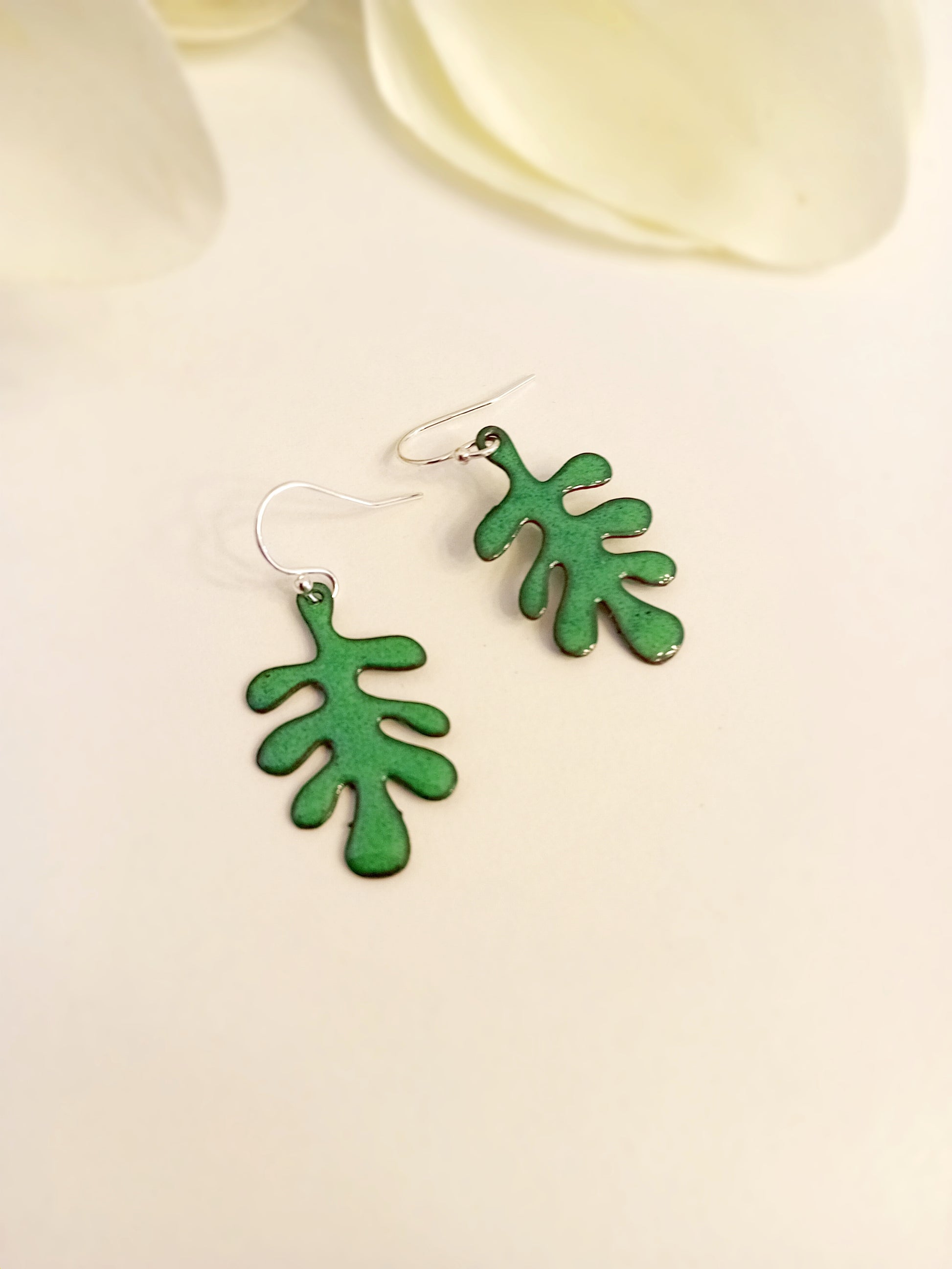 🌿 Boucles d’oreilles “Ondine” – Émaux verts sur métal