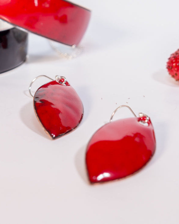 ❤️ Boucles d’oreilles feuilles rouges – Émaux d’art sur métal