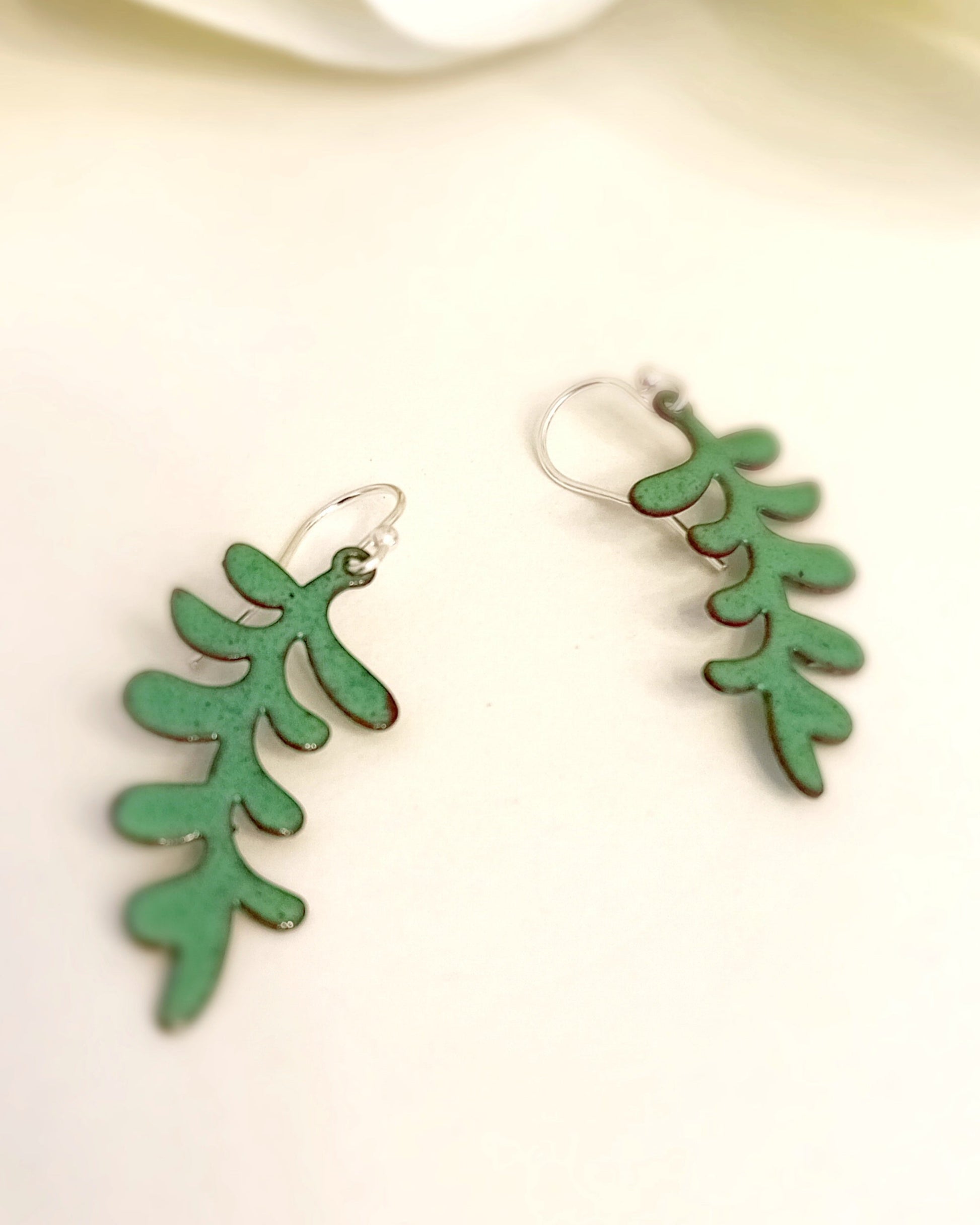 🍃 Boucles d’oreilles “Sylva” – Émaux verts sur métal