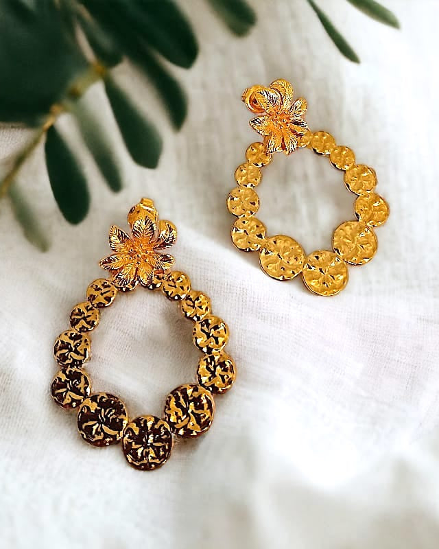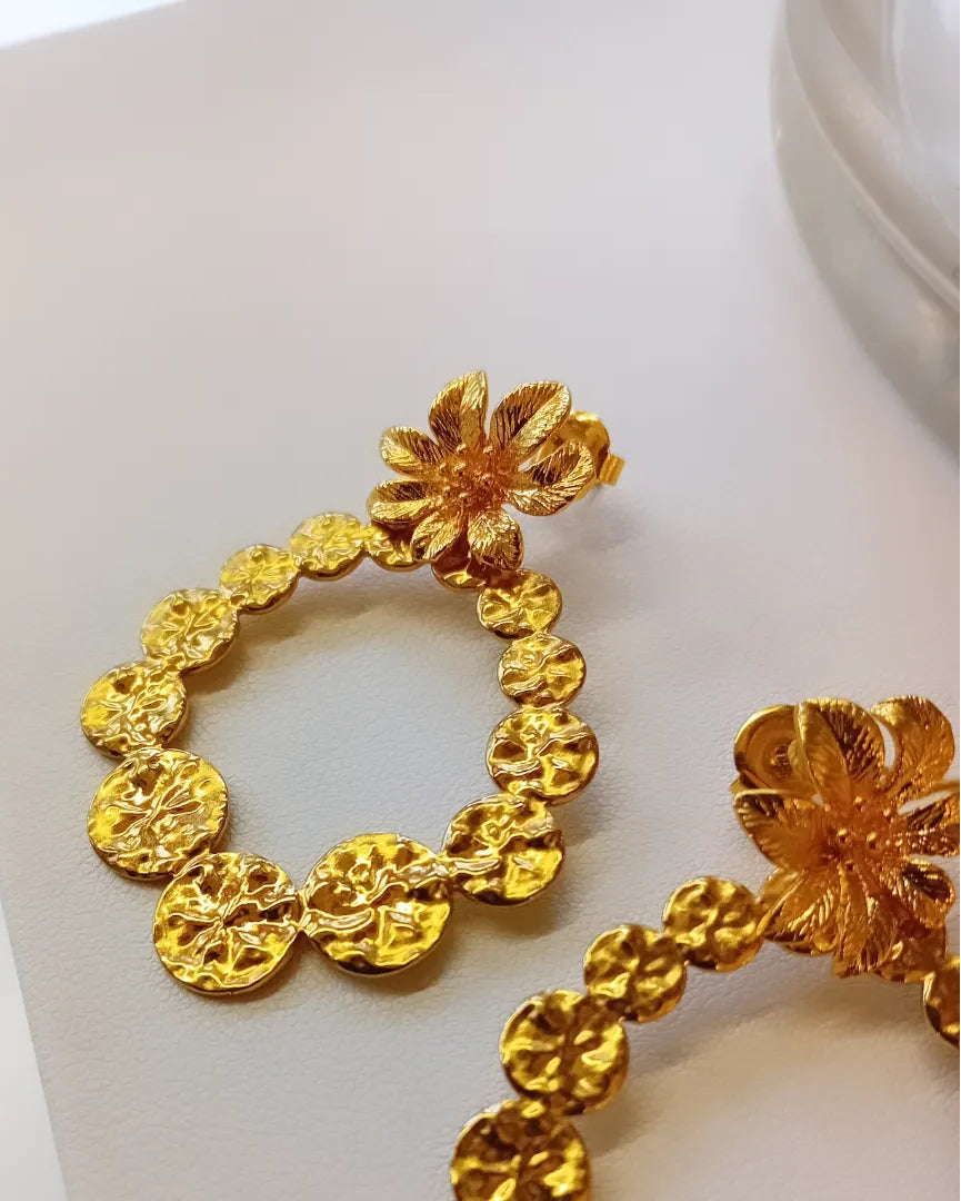 Boucles d’oreilles dorées en acier, modèle Fleur du jour, bijou fait main en forme de fleur – Au Fil d’Émaux