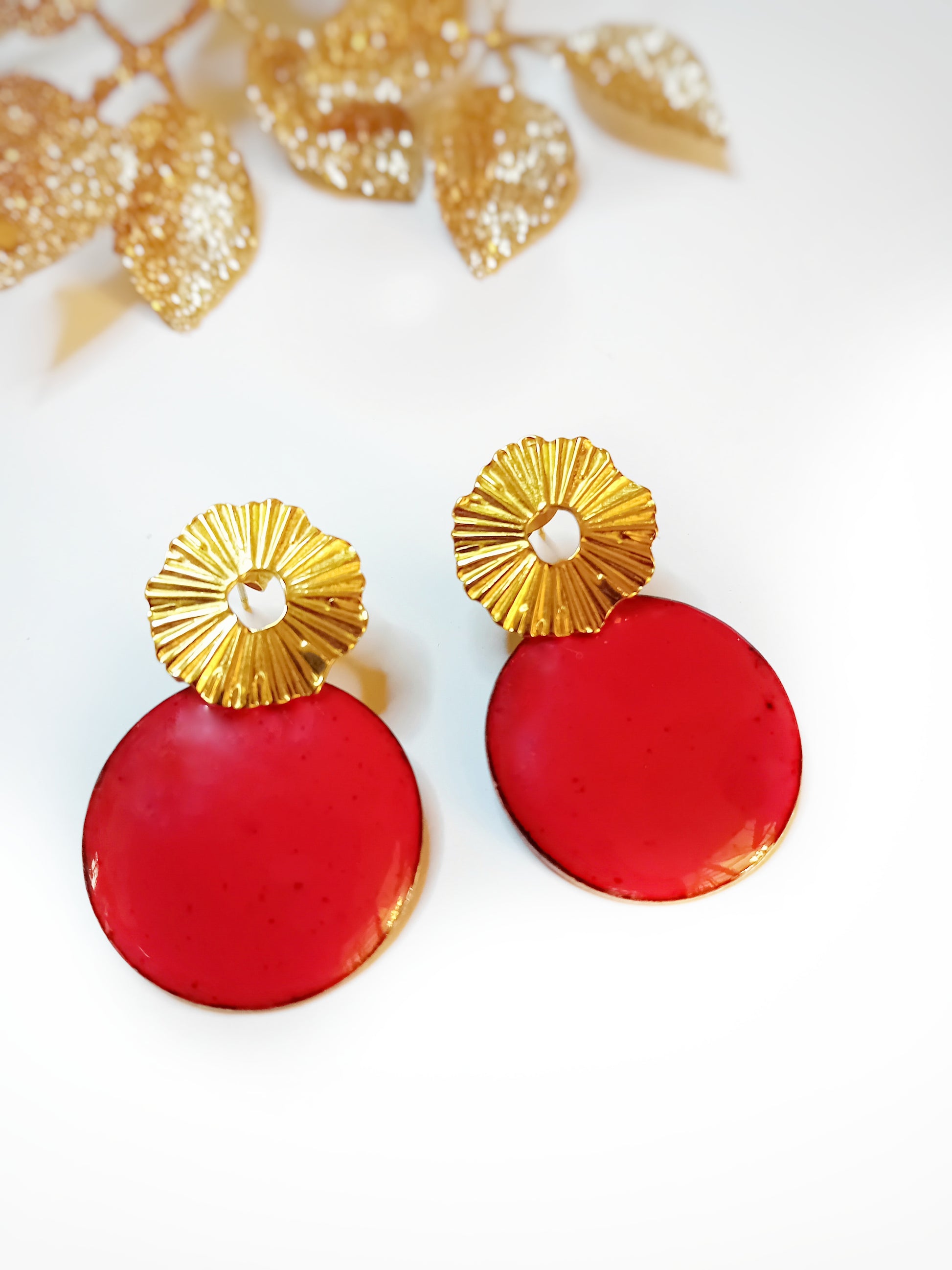 ✔️ Disques en émail rouge artisanal – 2,4 cm de diamètre