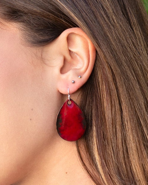 Boucles d’oreilles Grandes Gouttes Rouge bordeaux – Émaux d’art