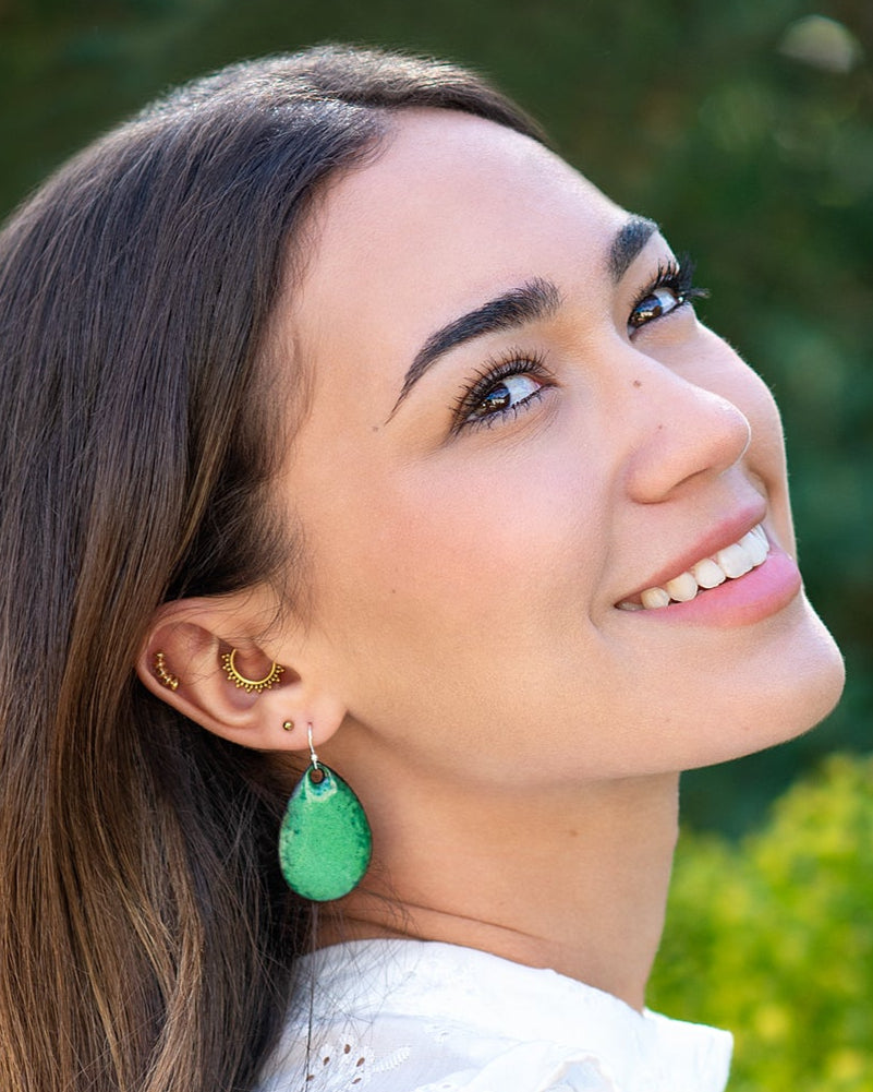 Boucles d’oreilles Grandes Gouttes Vertes – Émaux d’art sur cuivre