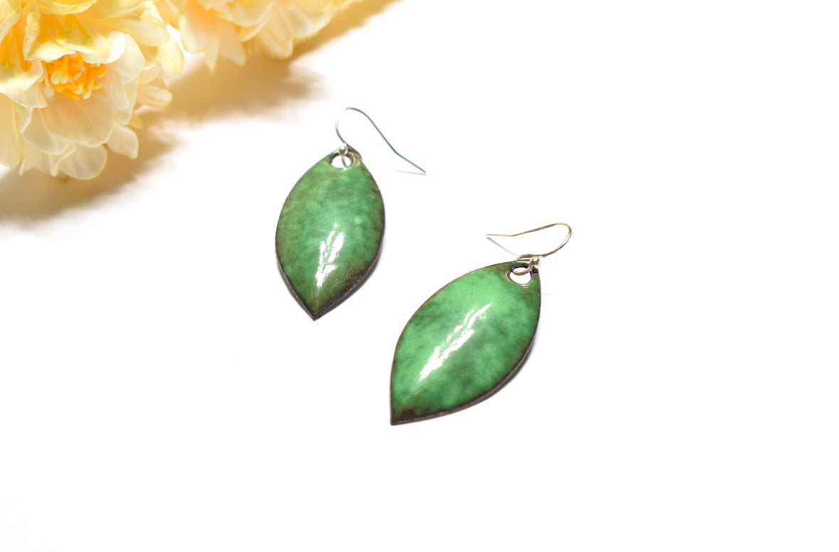 🍃 Boucles d’oreilles feuilles vertes - Émaux d’art sur métal