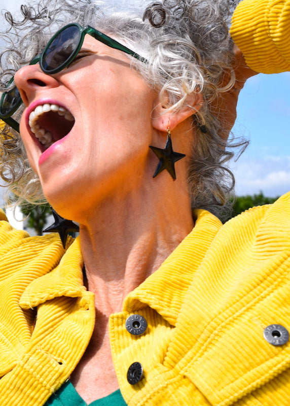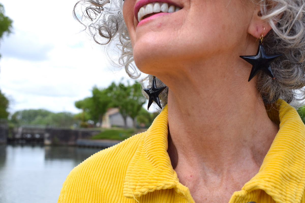 Boucles Grandes Étoiles Noires en Émail * Sur Commande *