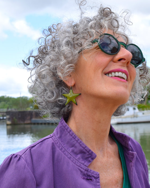 Les boucles "Grandes Étoiles" vert olive apportent une note pétillante et originale à votre style. Façonnées à la main avec soin, elles sont conçues pour sublimer toutes vos tenues, en toute saison.