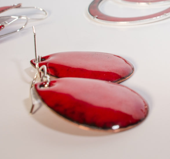❤️ Boucles d’oreilles gouttes rouges – Émaux d’art sur métal