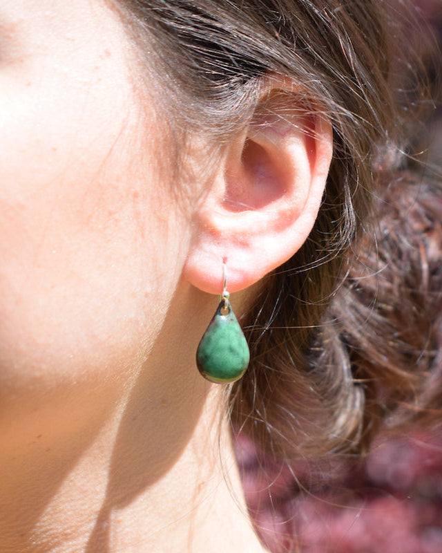 Les boucles "Petites Gouttes Vertes" apportent une touche subtile et naturelle à votre style. Ces boucles d'oreilles, réalisées en émail vert, sont parfaites pour ajouter de la légèreté et de la couleur à vos tenues.