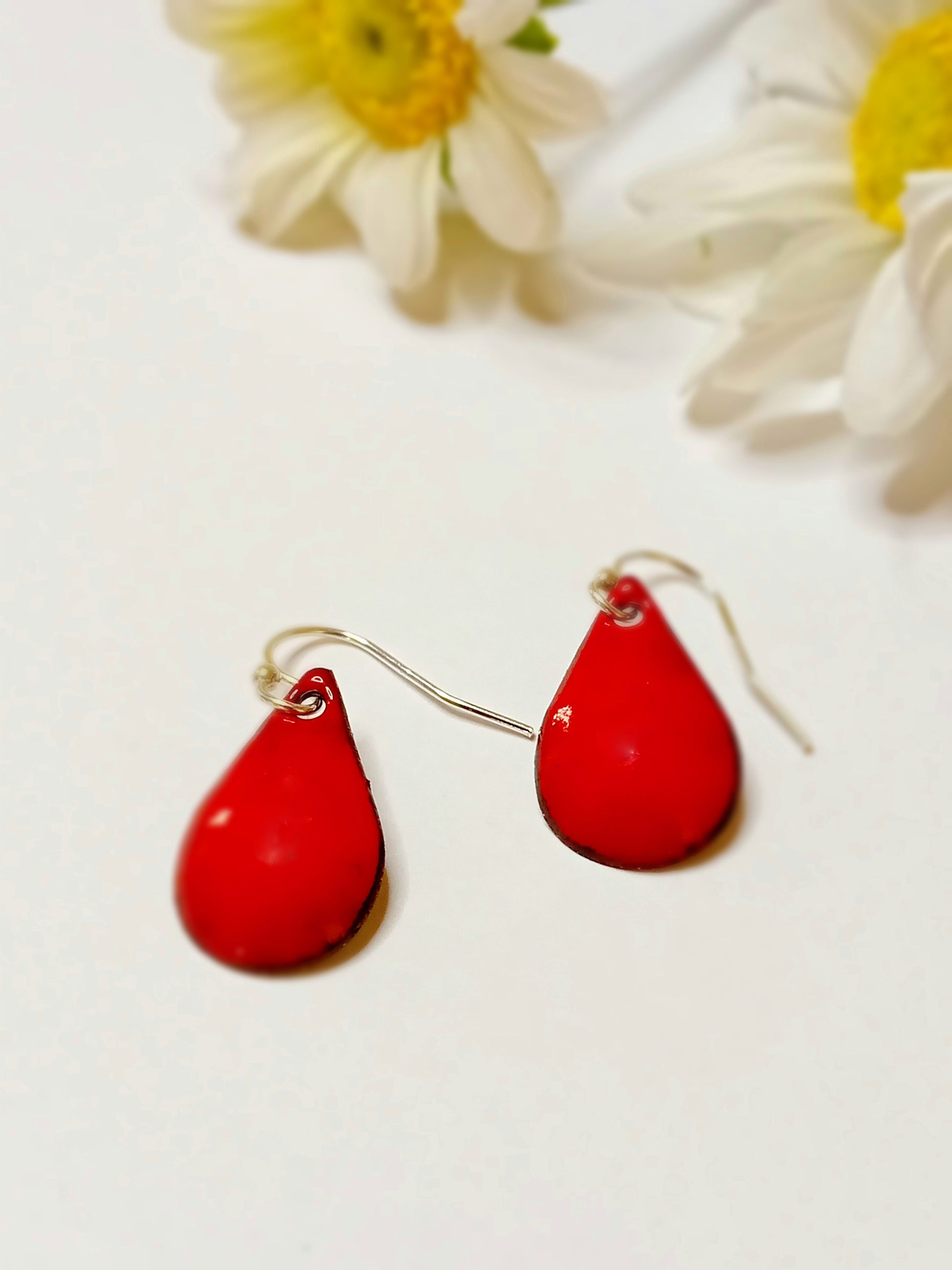 ❤️ Boucles d’oreilles Petites Gouttes Rouge Vif – Émaux d’art sur cuivre
