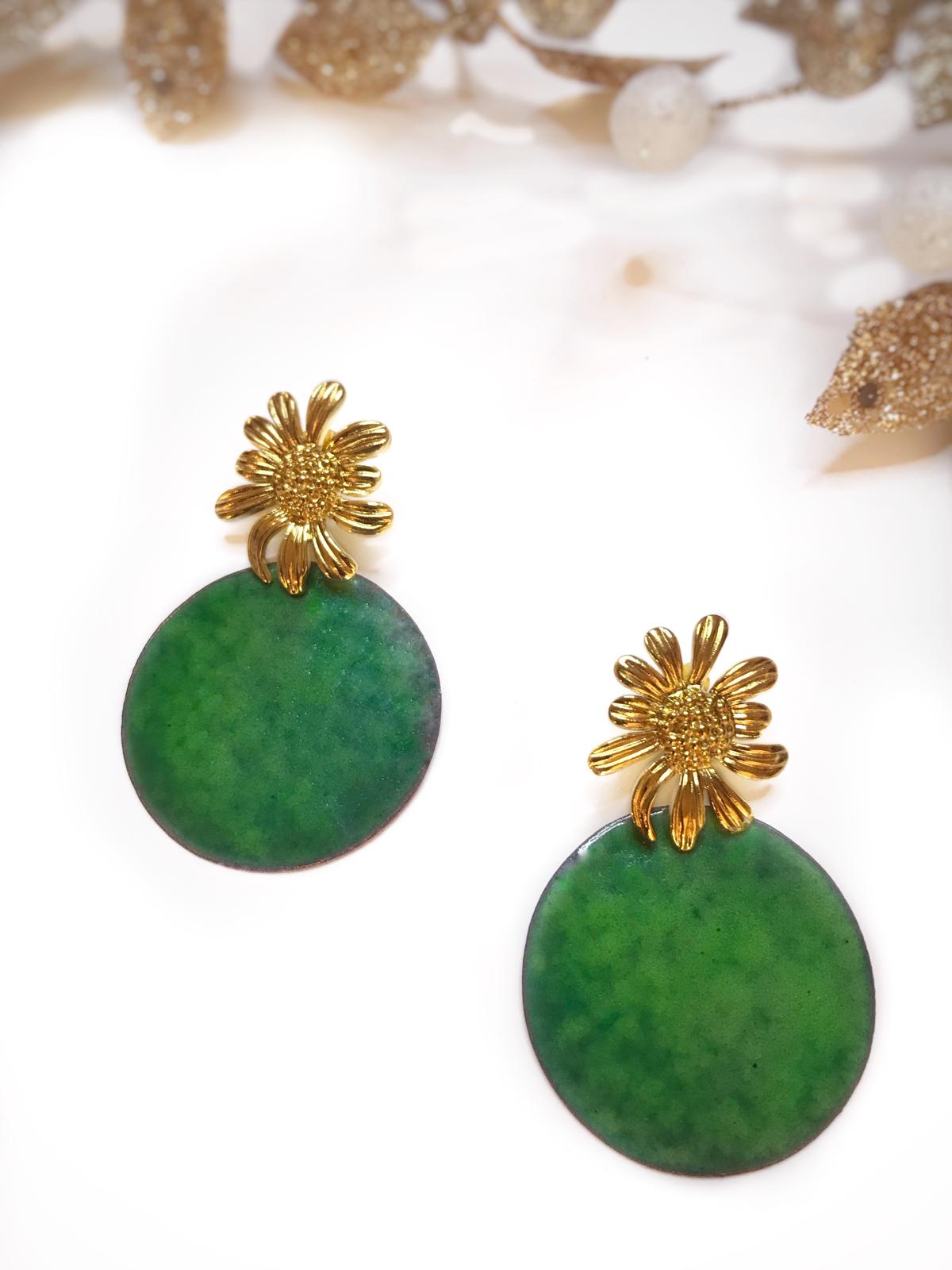 Boucles “Garden Party” – Élégance florale en vert émaillé