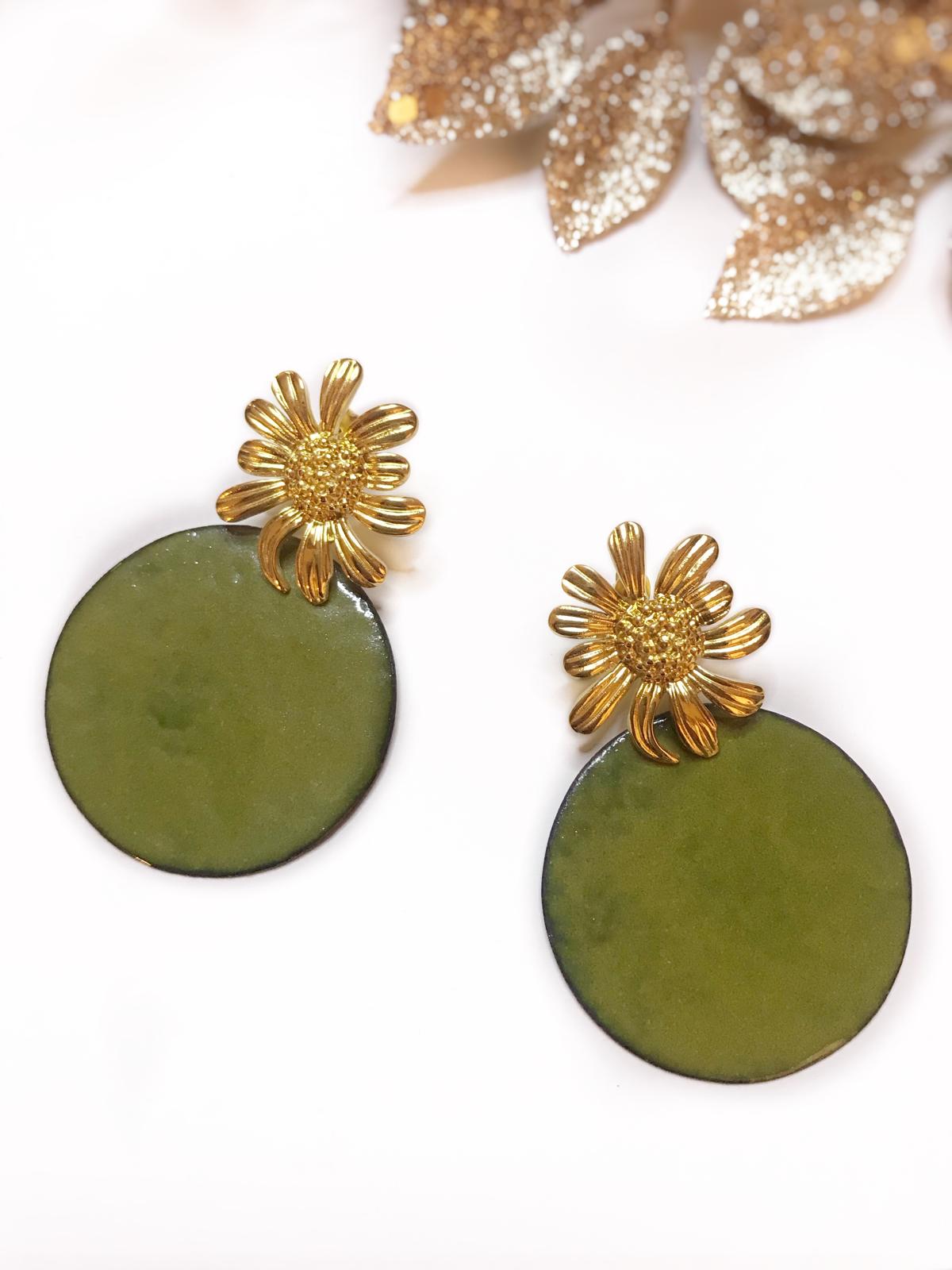Boucles “Garden Party” – Élégance florale en vert olive émaillé
